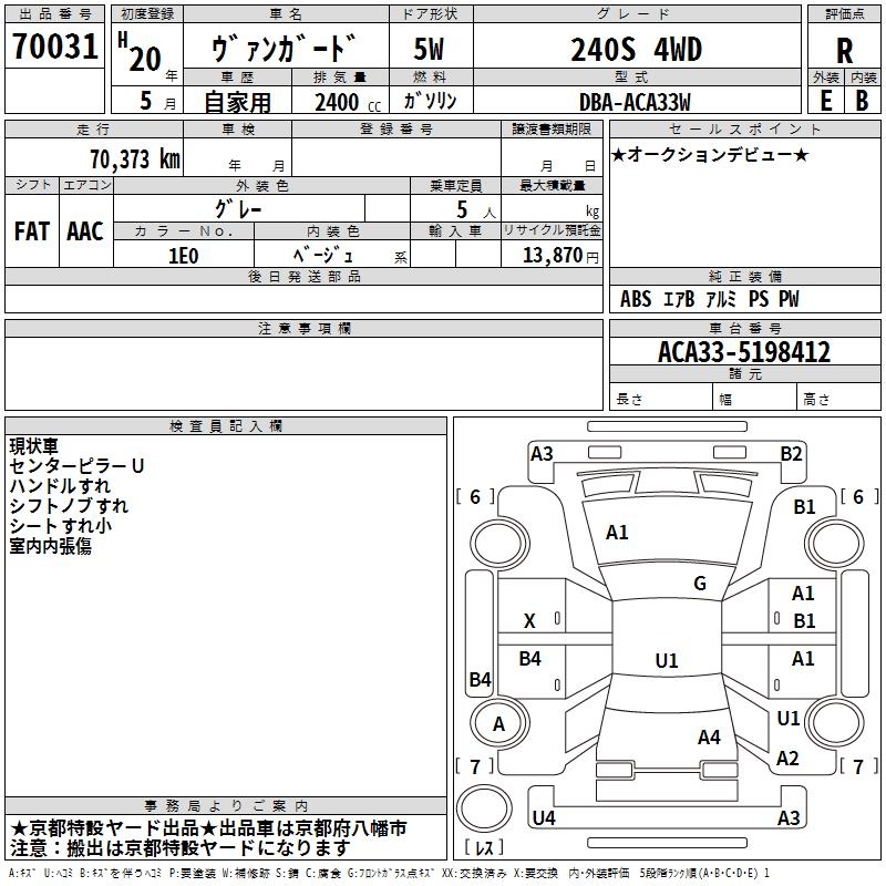 TOYOTA VANGUARD - лот 70031