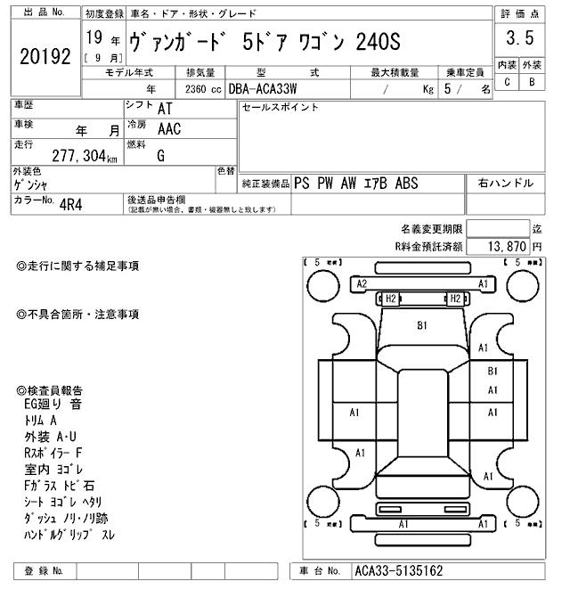 TOYOTA VANGUARD - лот 20192