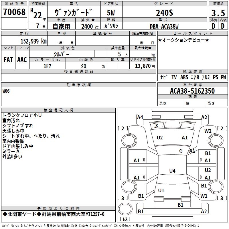 TOYOTA VANGUARD 240S - лот 70068