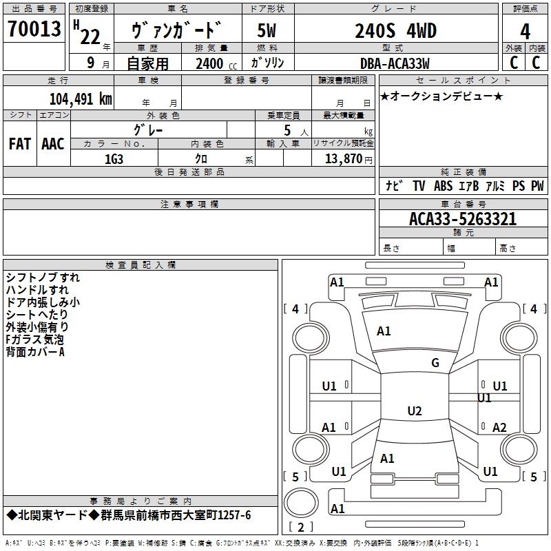 TOYOTA VANGUARD 240S 4WD - лот 70013