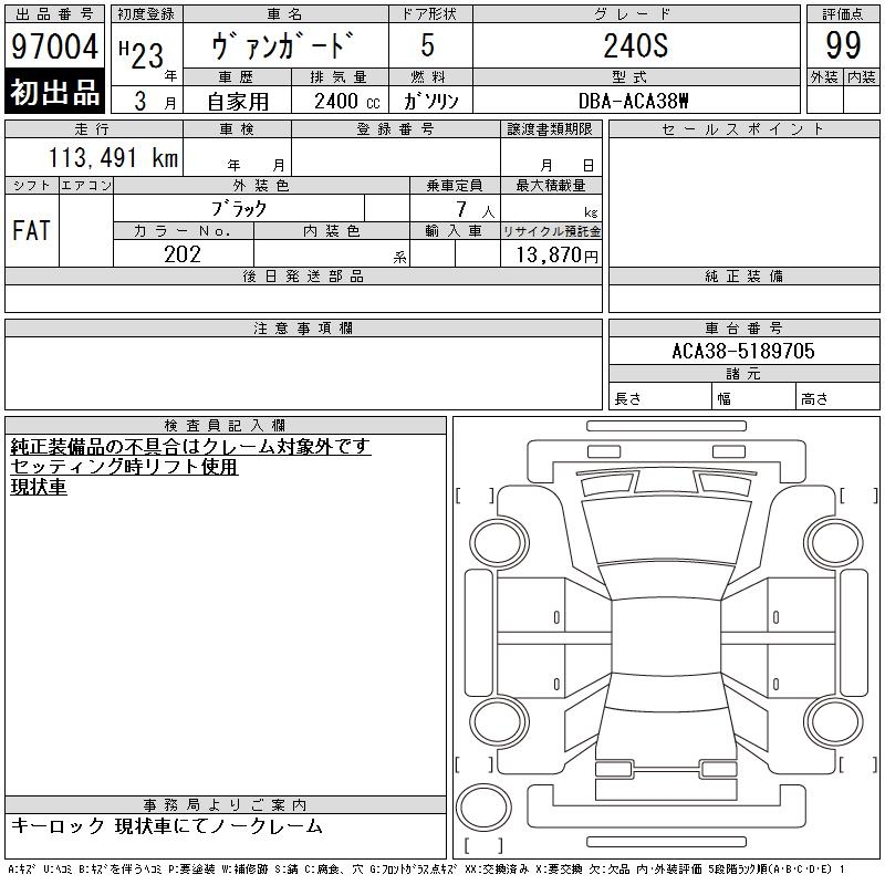TOYOTA VANGUARD 240S - лот 97004