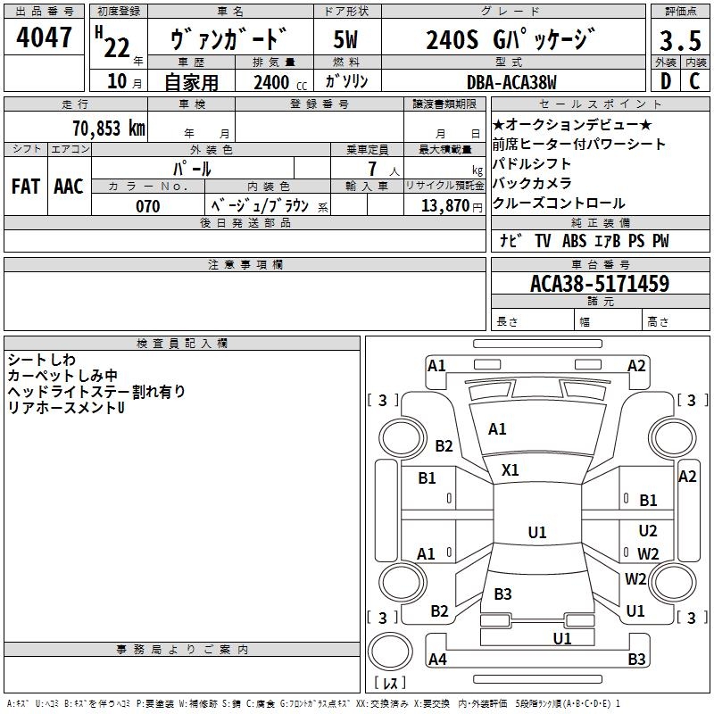 TOYOTA VANGUARD 240S G PACKAGE - лот 4047