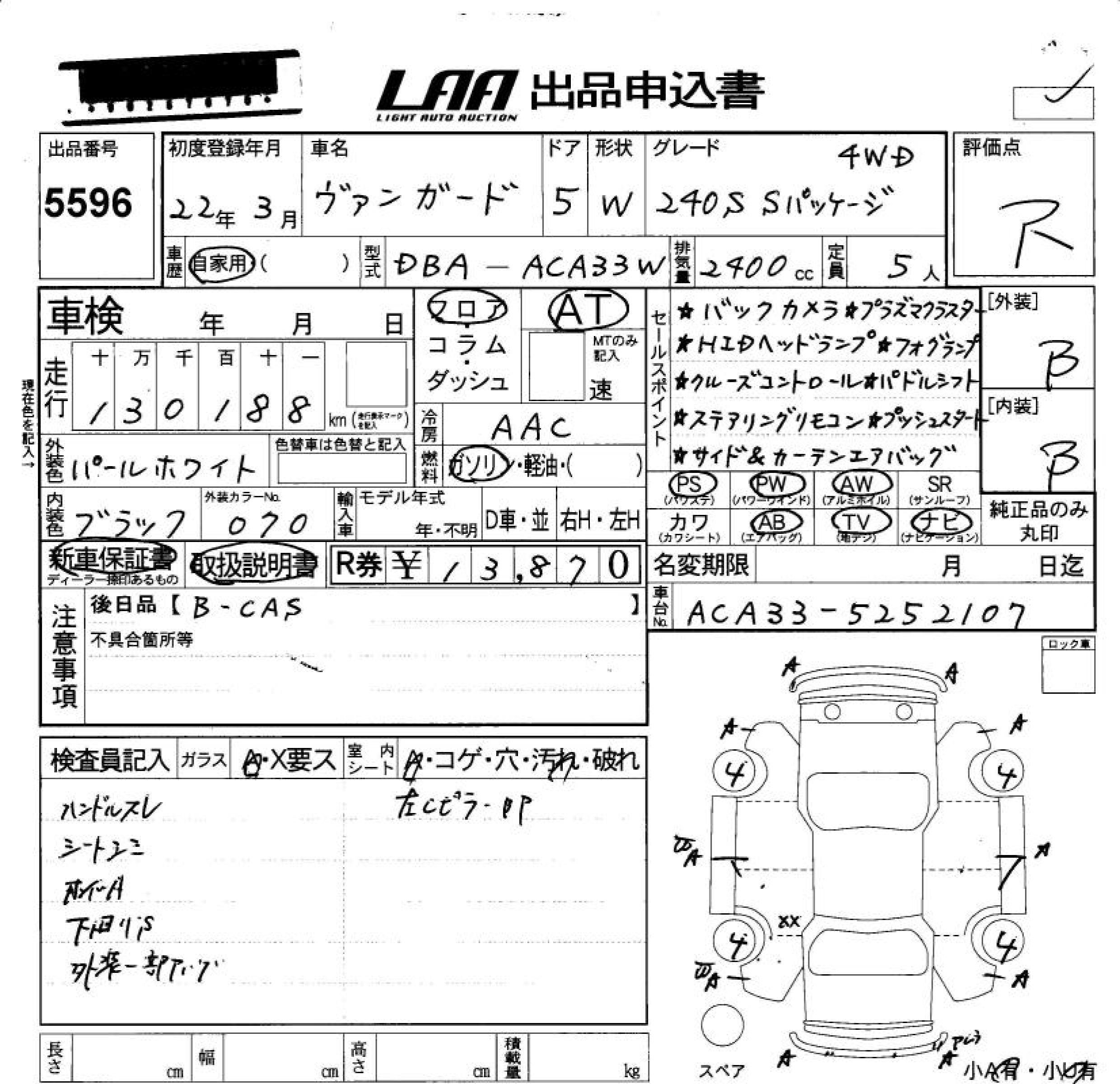 TOYOTA VANGUARD 240S S PACKAGE 4WD - лот 5596