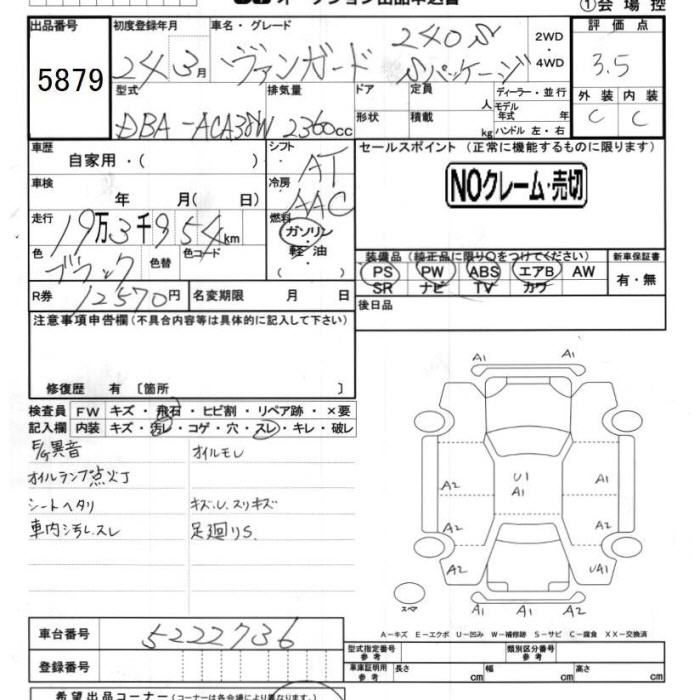 TOYOTA VANGUARD 240S S PACKAGE - лот 5879