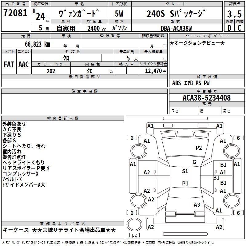 TOYOTA VANGUARD 240S S PACKAGE - лот 72081