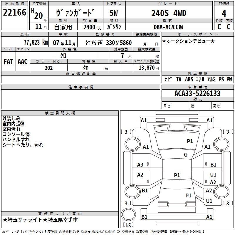 TOYOTA VANGUARD 240S 4WD - лот 22166