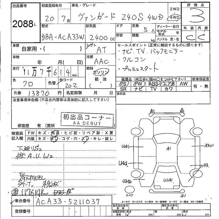 TOYOTA VANGUARD 4WD 240S - лот 2088
