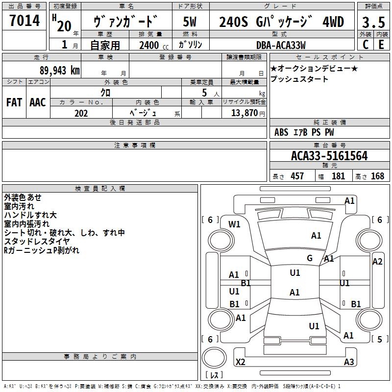 TOYOTA VANGUARD 240S G PACKAGE 4WD - лот 7014