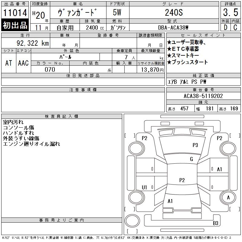 TOYOTA VANGUARD 240S - лот 11014