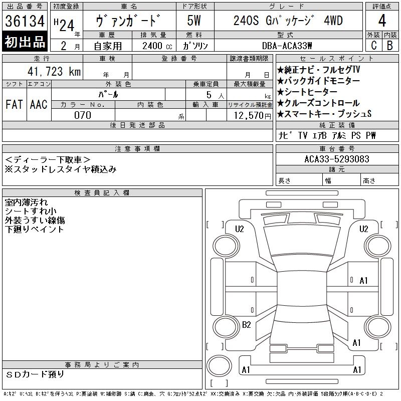 TOYOTA VANGUARD 240S G PACKAGE 4WD - лот 36134