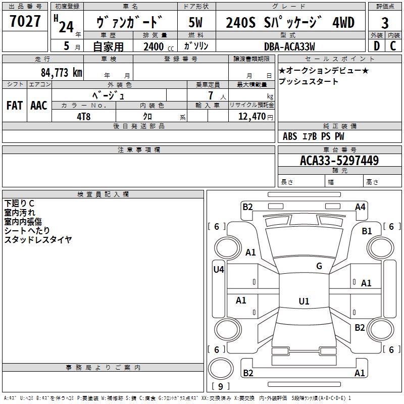 TOYOTA VANGUARD 240S S PACKAGE 4WD - лот 7027