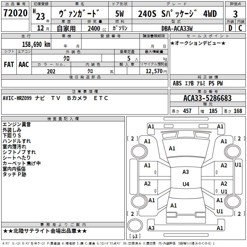TOYOTA VANGUARD 240S S PACKAGE 4WD - лот 72020