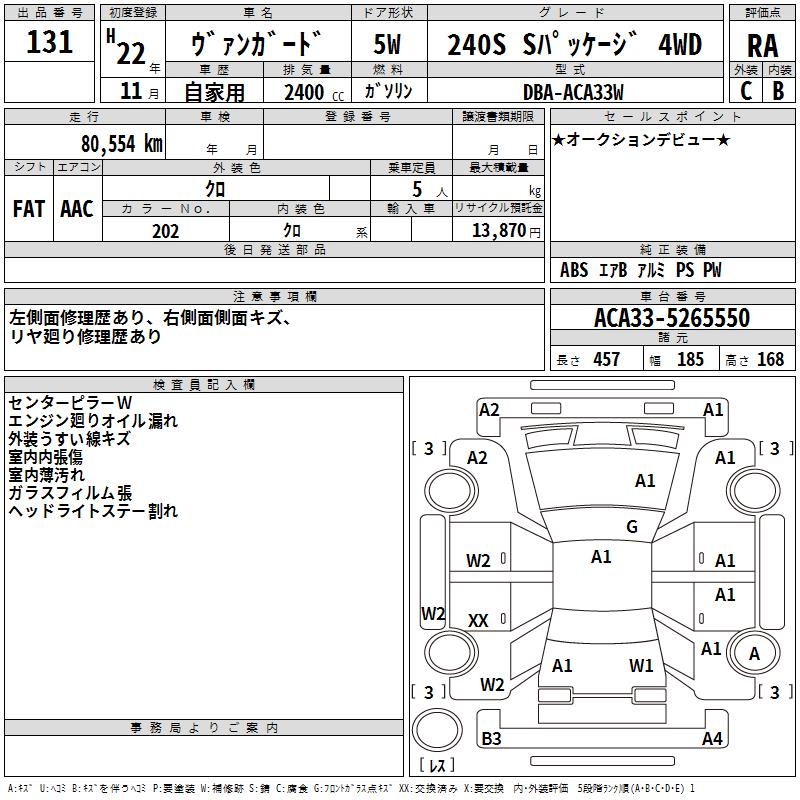 TOYOTA VANGUARD 240S S PACKAGE 4WD - лот 131