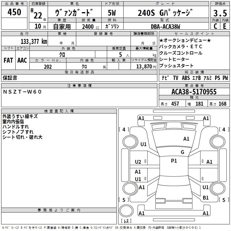 TOYOTA VANGUARD 240S G PACKAGE - лот 450