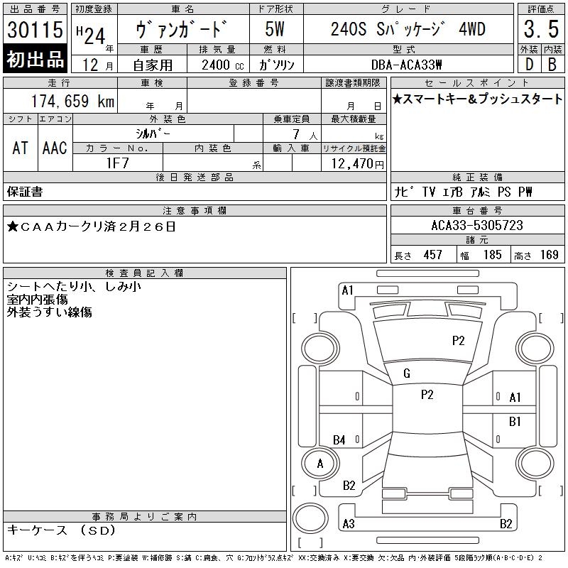 TOYOTA VANGUARD 240S S PACKAGE 4WD - лот 30115