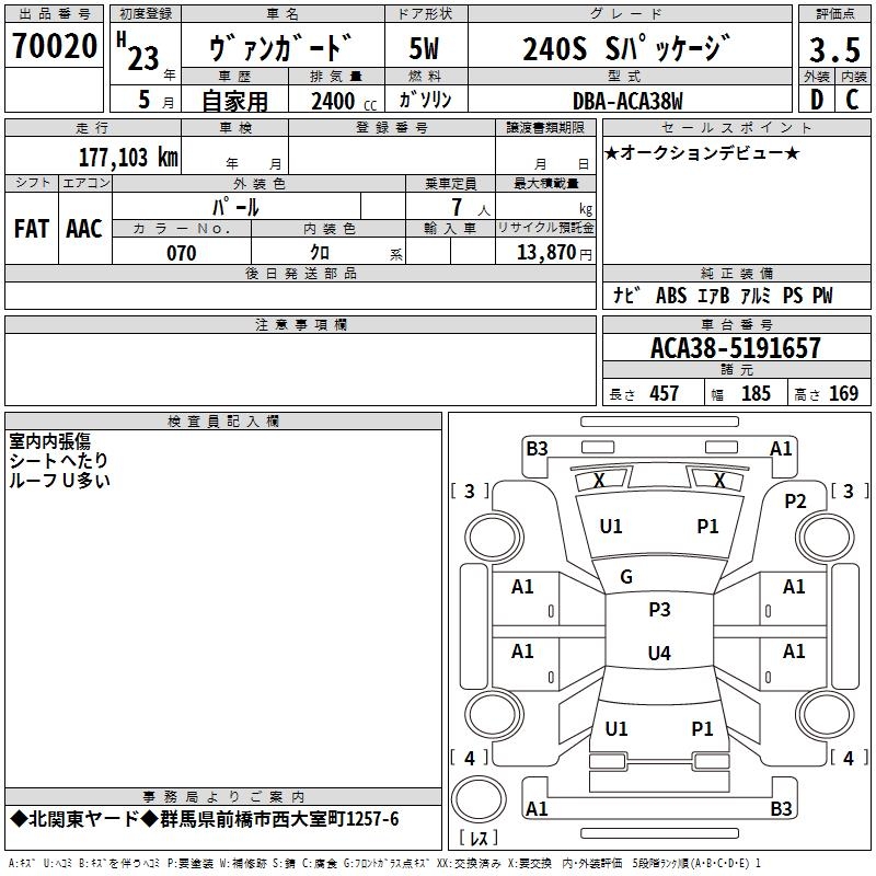 TOYOTA VANGUARD 240S S PACKAGE - лот 70020
