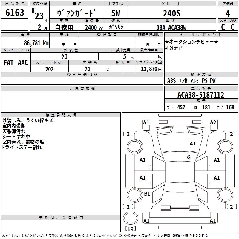 TOYOTA VANGUARD 240S - лот 6163