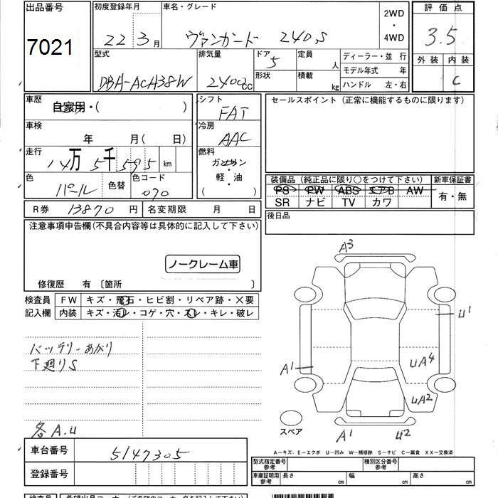 TOYOTA VANGUARD 240S - лот 7021
