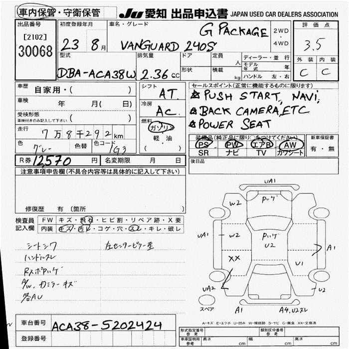 TOYOTA VANGUARD 240S G PACKAGE - лот 30068