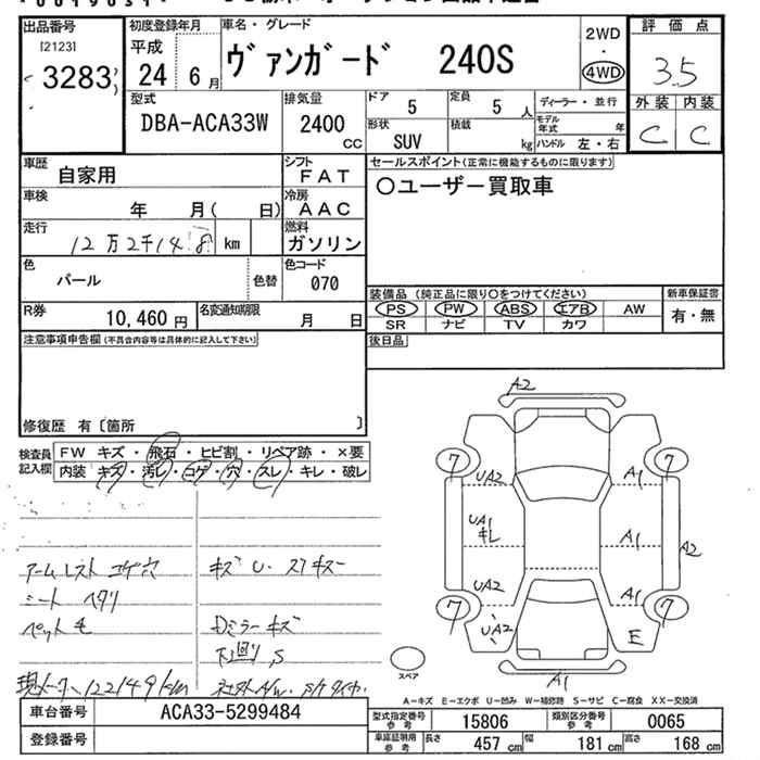 TOYOTA VANGUARD 4WD 240S - лот 3283