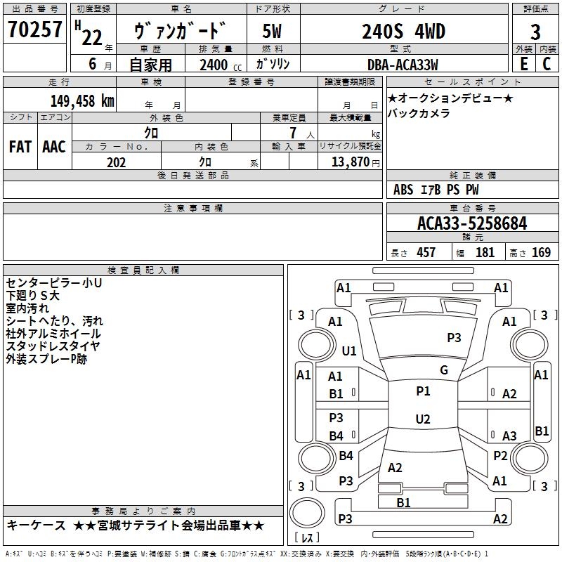 TOYOTA VANGUARD 240S 4WD - лот 70257