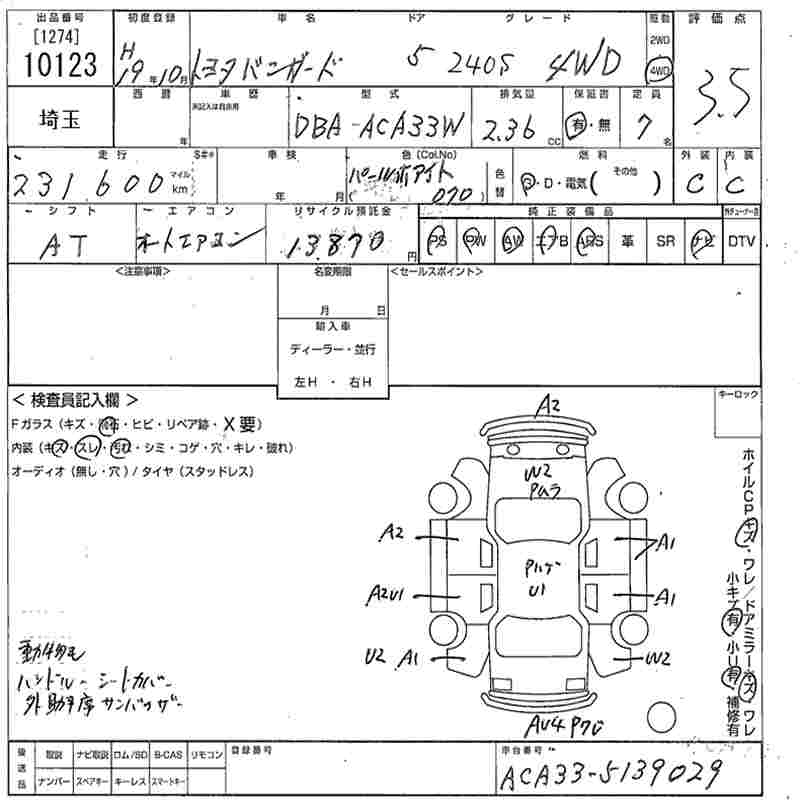 TOYOTA VANGUARD 240S - лот 10123