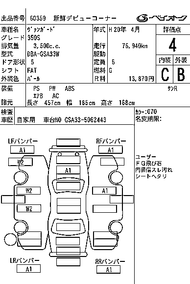 TOYOTA VANGUARD 350S - лот 60359