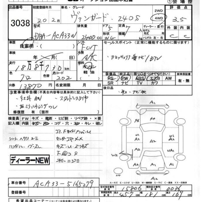 TOYOTA VANGUARD 4WD 240S - лот 3038