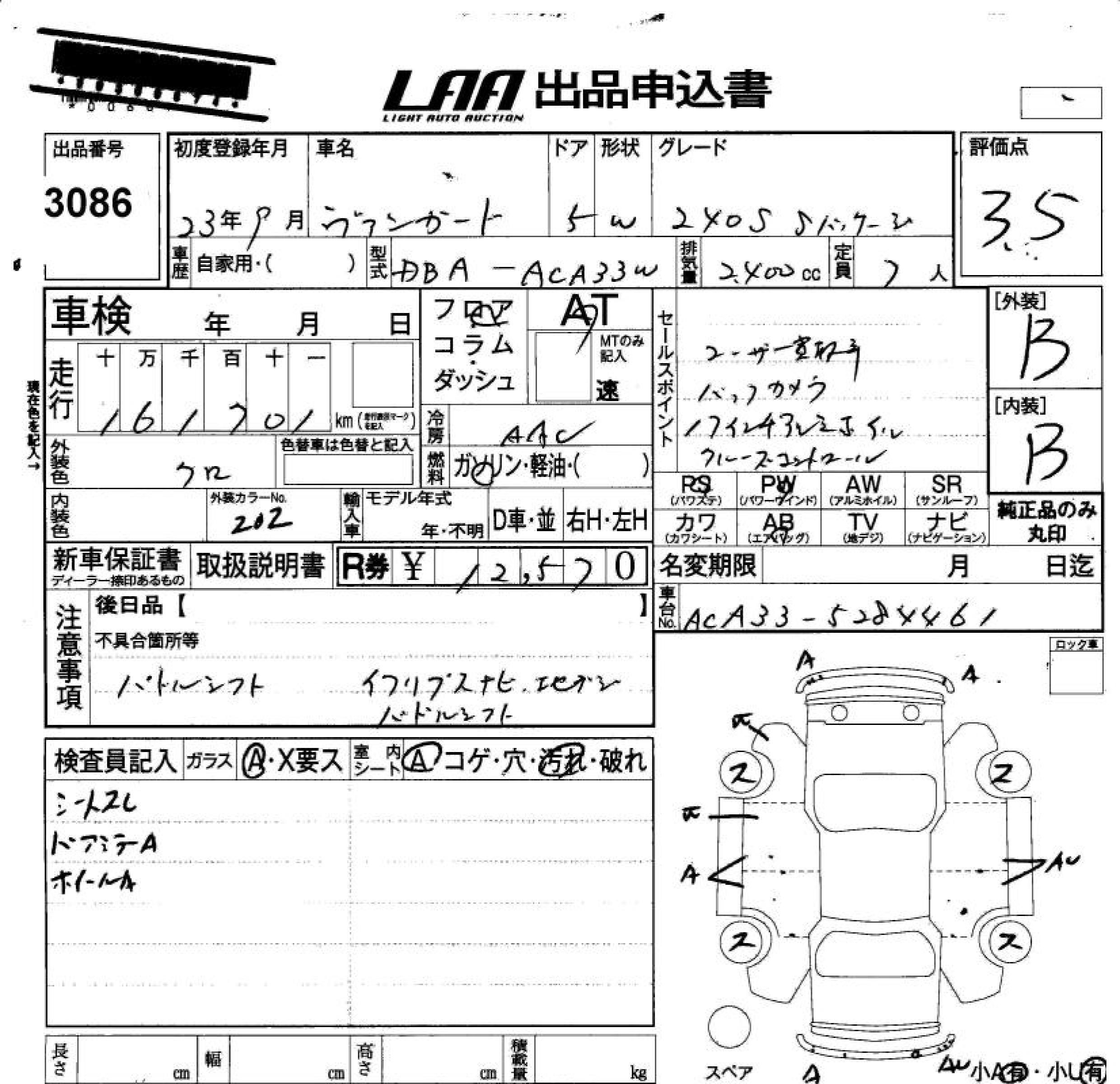 TOYOTA VANGUARD 240S S PACKAGE - лот 3086