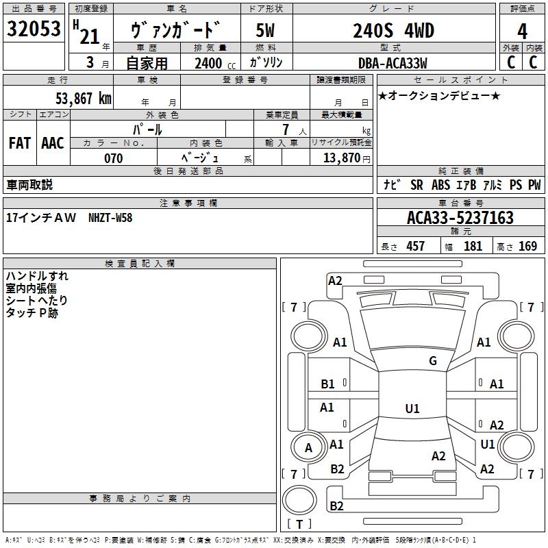 TOYOTA VANGUARD 240S 4WD - лот 32053