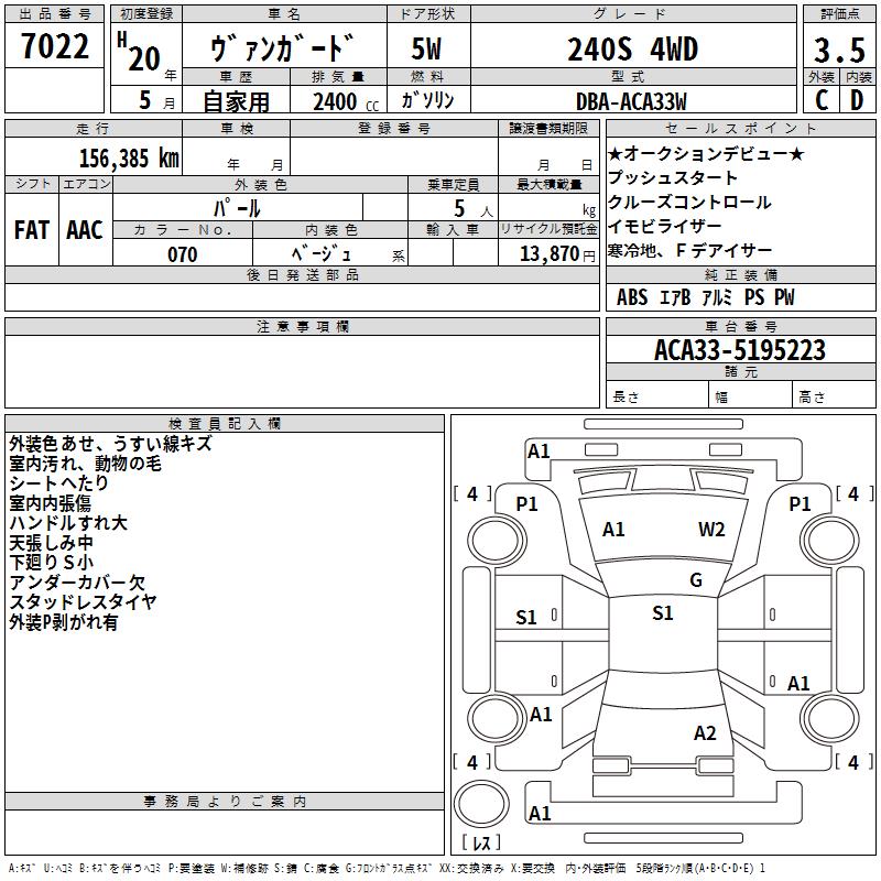 TOYOTA VANGUARD 240S 4WD - лот 7022