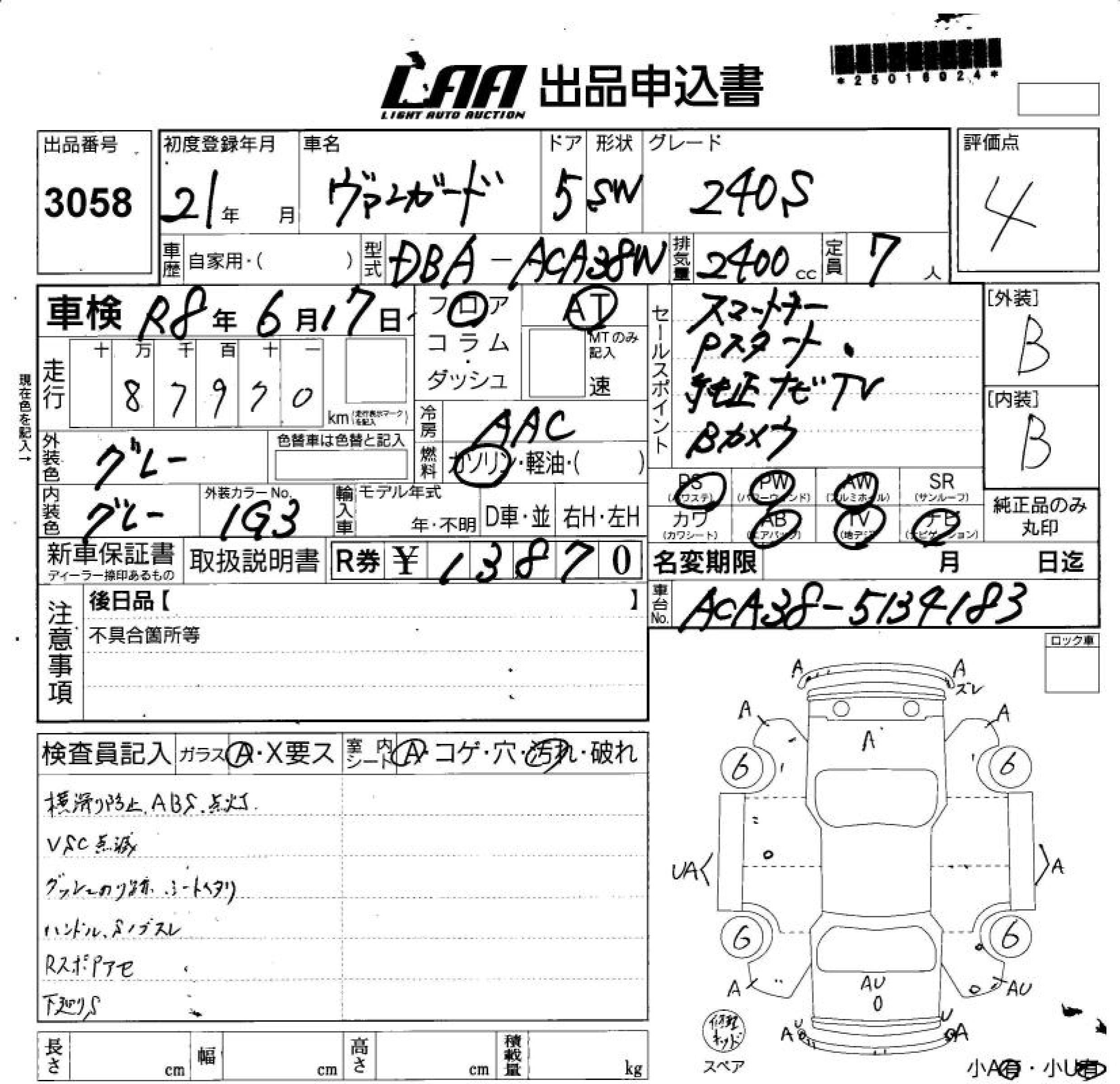 TOYOTA VANGUARD 240S - лот 3058