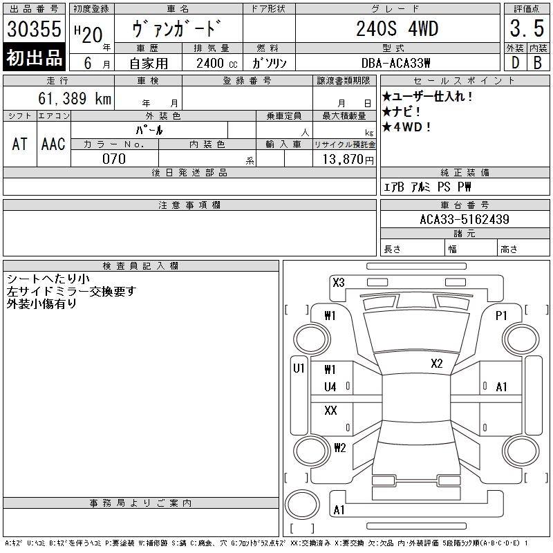 TOYOTA VANGUARD 240S 4WD - лот 30355