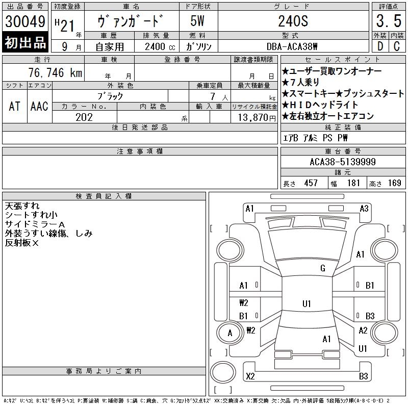 TOYOTA VANGUARD 240S - лот 30049