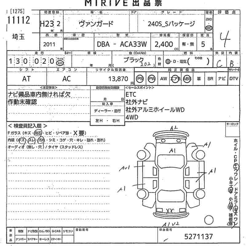 TOYOTA VANGUARD 240S_S PACKAGE - лот 11112