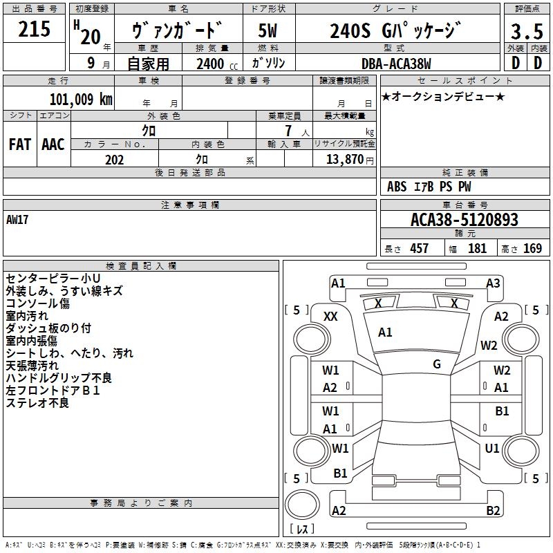 TOYOTA VANGUARD 240S G PACKAGE - лот 215