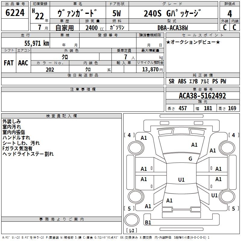 TOYOTA VANGUARD 240S G PACKAGE - лот 6224