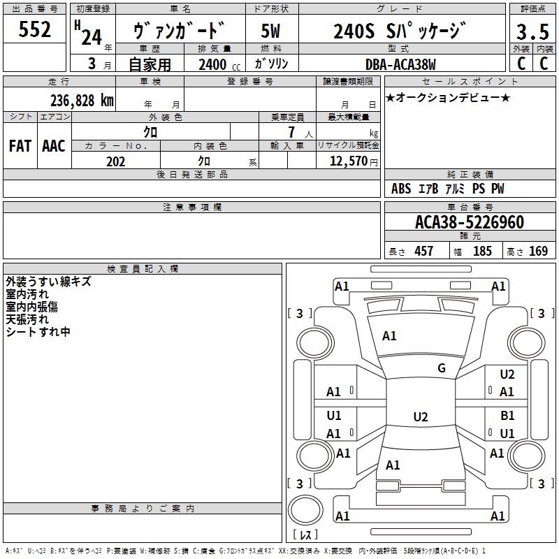 TOYOTA VANGUARD 240S S PACKAGE - лот 552