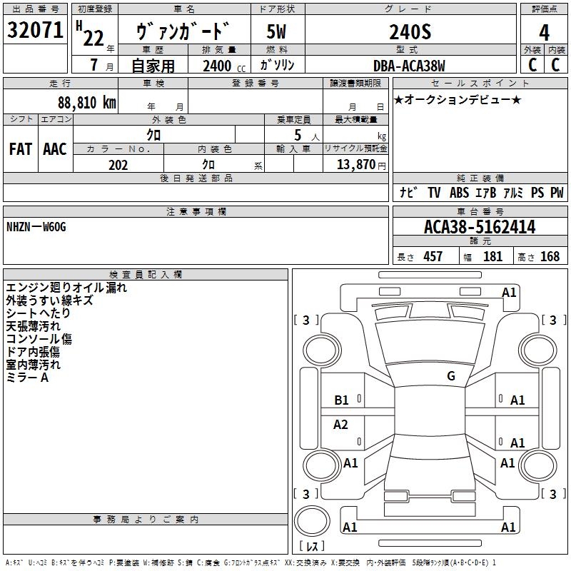 TOYOTA VANGUARD 240S - лот 32071