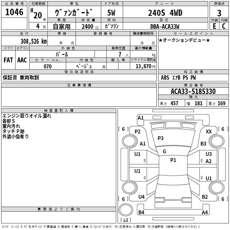 TOYOTA VANGUARD 240S 4WD - лот 1046