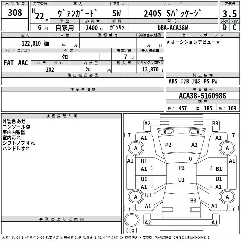 TOYOTA VANGUARD 240S S PACKAGE - лот 308