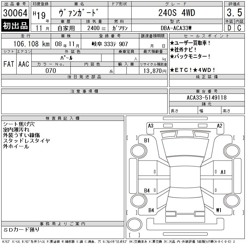 TOYOTA VANGUARD 240S 4WD - лот 30064