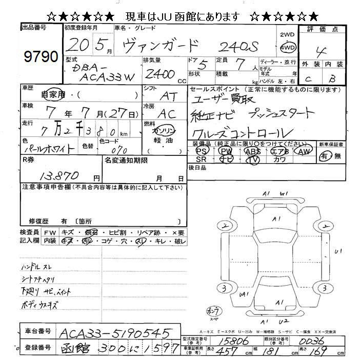 TOYOTA VANGUARD 4WD 240S - лот 9790