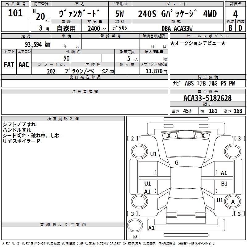 TOYOTA VANGUARD 240S G PACKAGE 4WD - лот 101