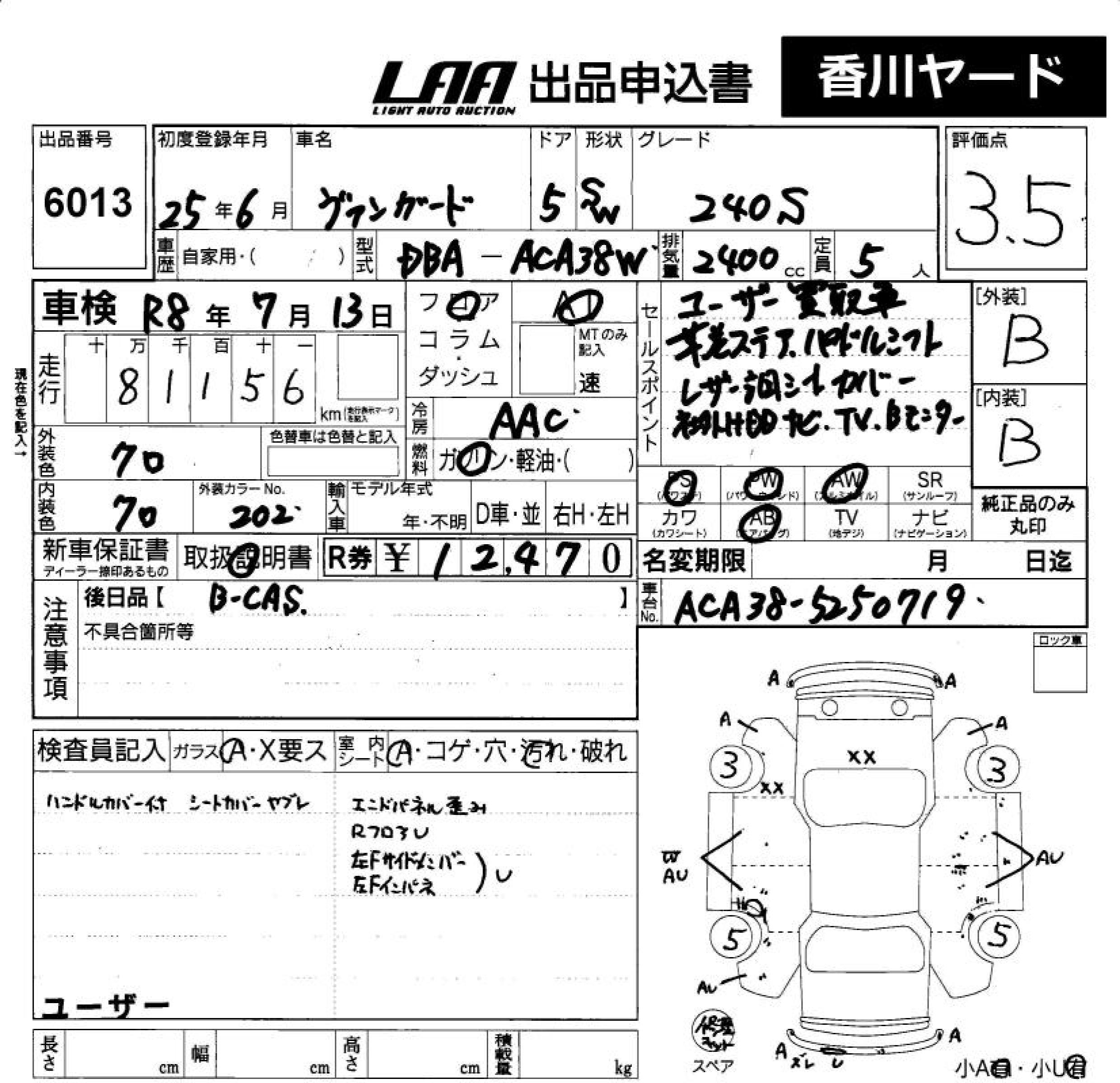 TOYOTA VANGUARD 240S - лот 6013