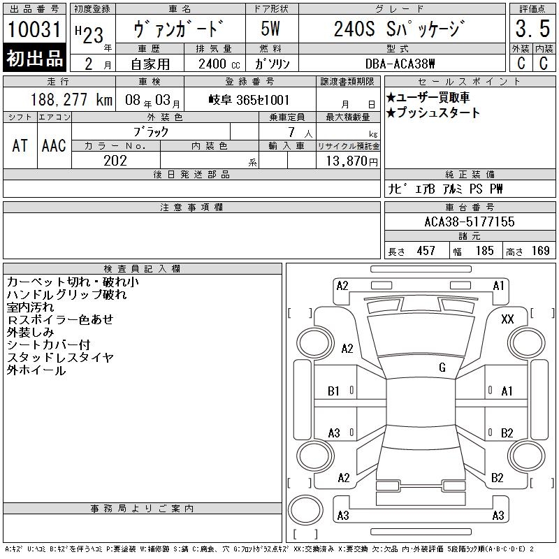 TOYOTA VANGUARD 240S S PACKAGE - лот 10031