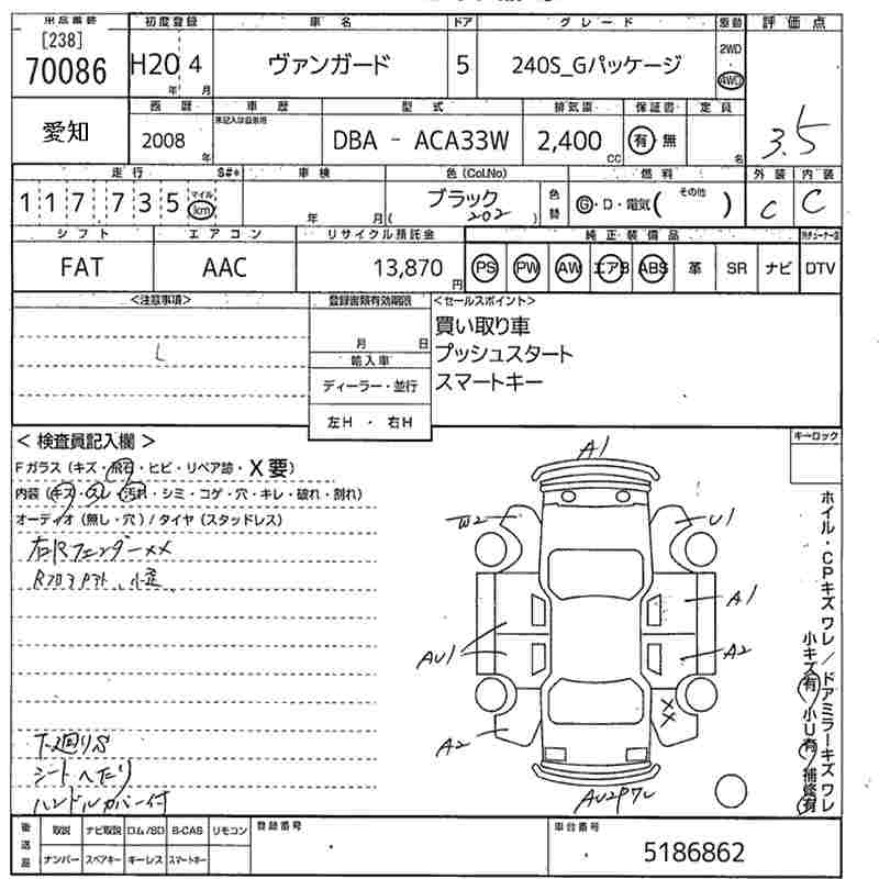 TOYOTA VANGUARD 240S_G PACKAGE - лот 70086
