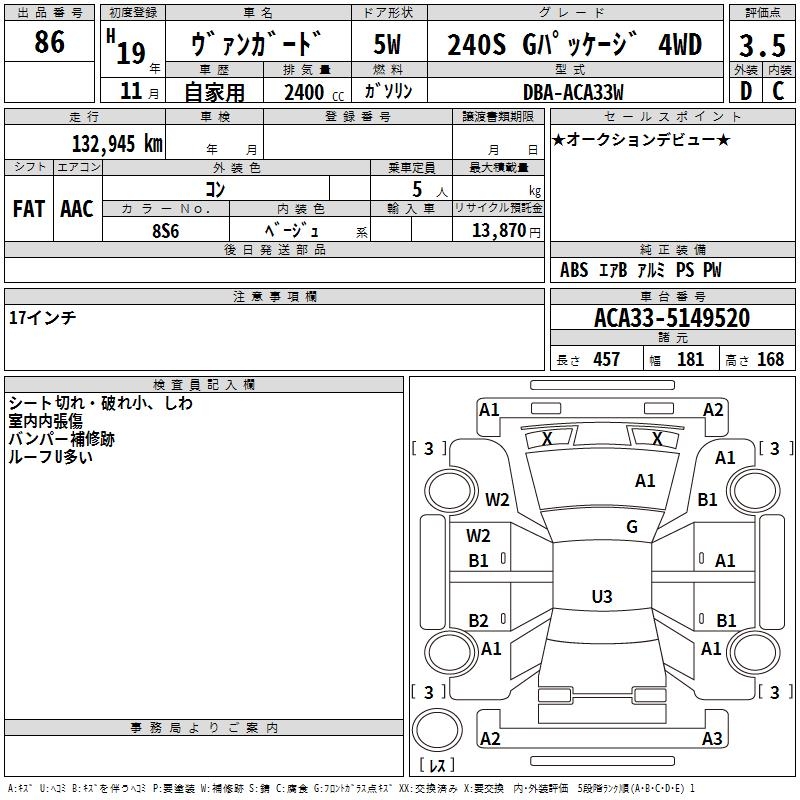 TOYOTA VANGUARD 240S G PACKAGE 4WD - лот 86
