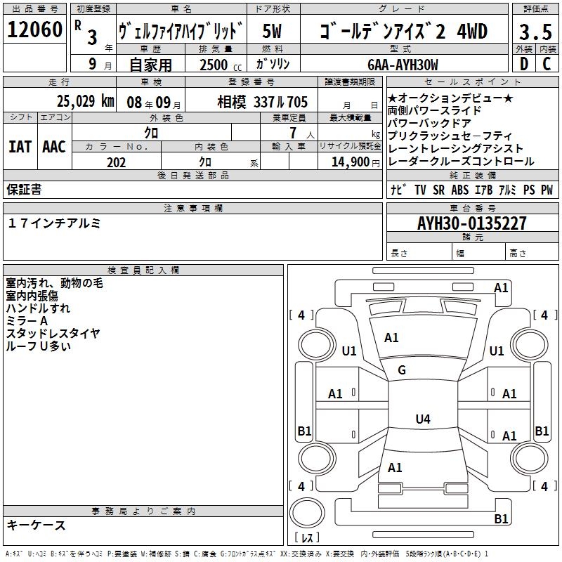 TOYOTA VELLFIRE HYBRID GOLDEN I Z2 4WD - лот 12060
