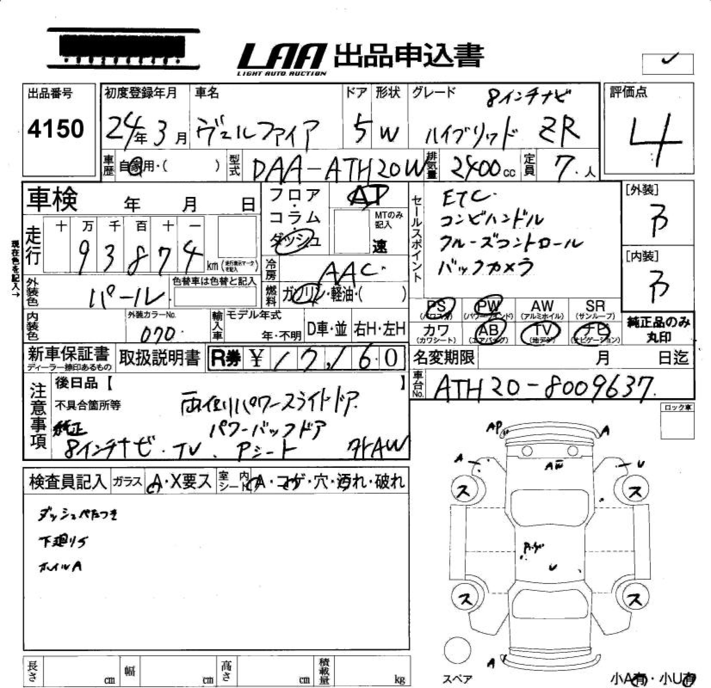 Все аукционы TOYOTA VELLFIRE HYBRID